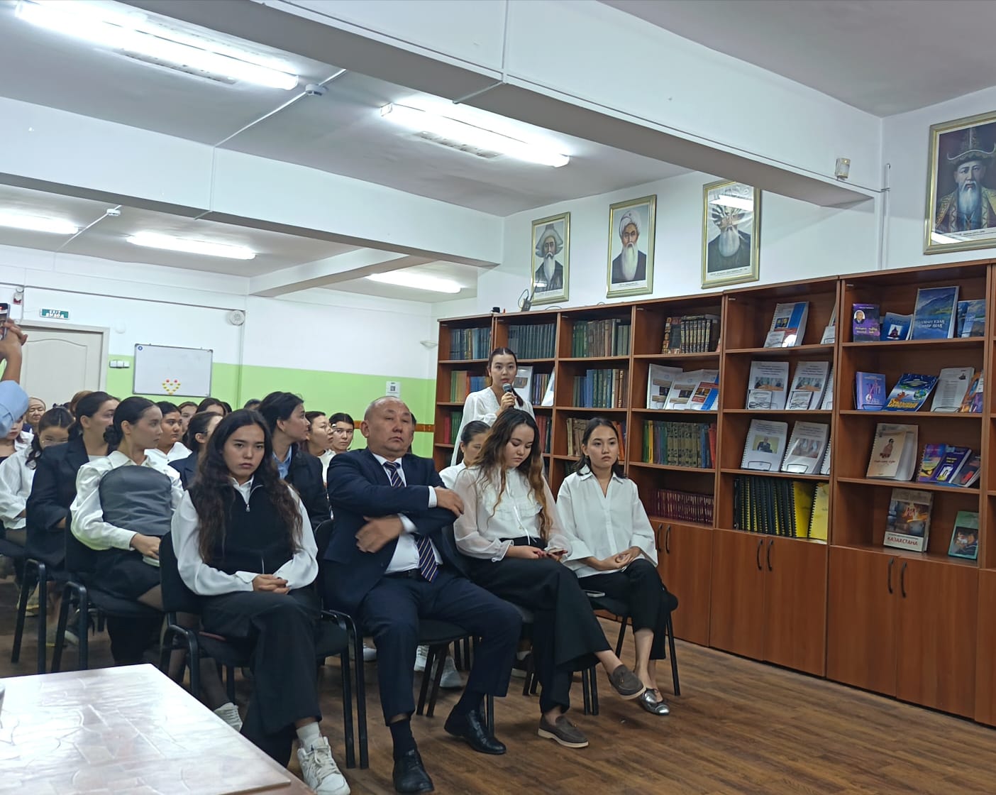 В ходе беседы писатель Нурдаулет Акыш отметил важность чтения в жизни современного человека, читатели имели возможность задать свои вопросы, прошло обсуждение произведений Б. Момышулы «Ұшқан ұя»,