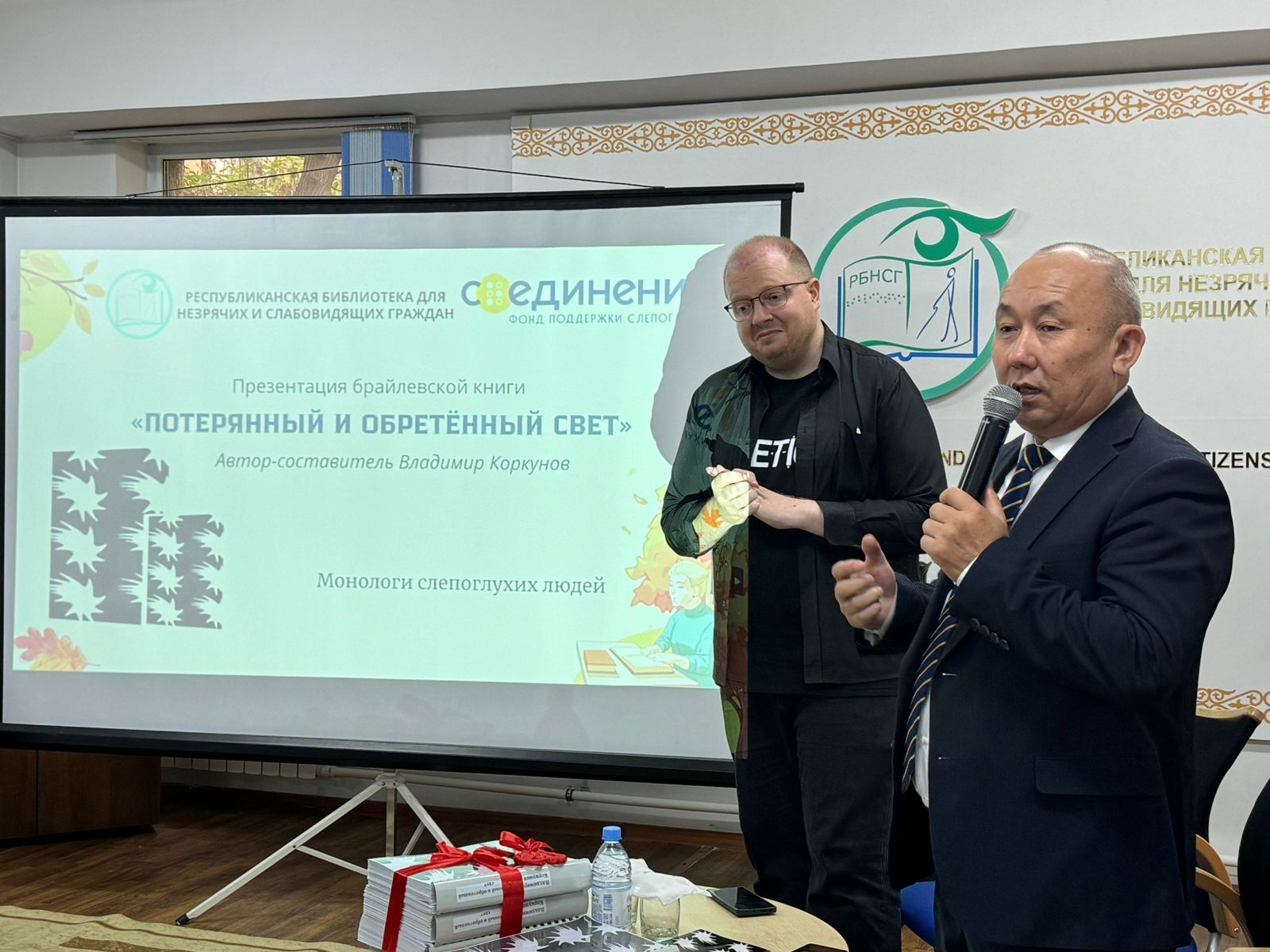 В рамках Международного Меморандума и Международного дня глухих Республиканская библиотека для незрячих и слабовидящих граждан РК впервые представляет творчество слепоглухих поэтов в брайлевском формате – это презентация книги Владимира Коркунова «Потерянный и обретенный свет».