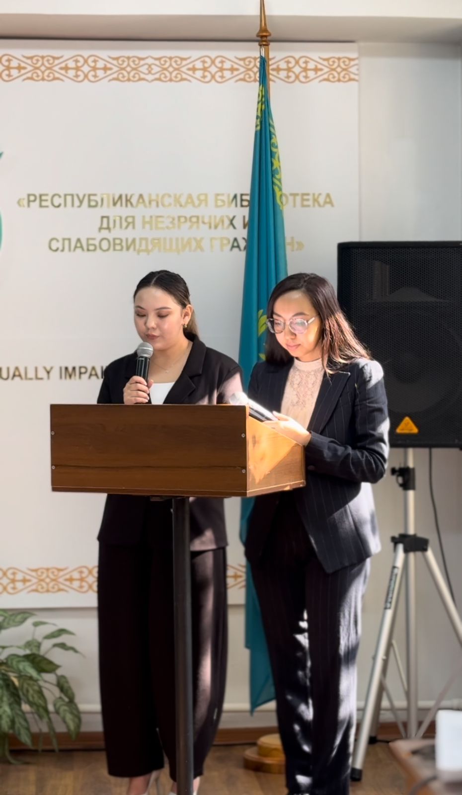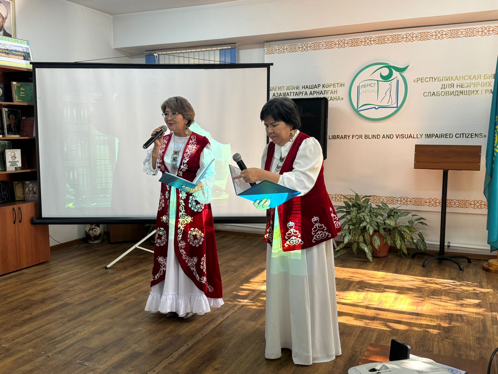 Вечер открыли ведущие, которые поздравили всех присутствующих с Днём Республики и Днём библиотек Казахстана и отметили важность библиотек в современном мире.