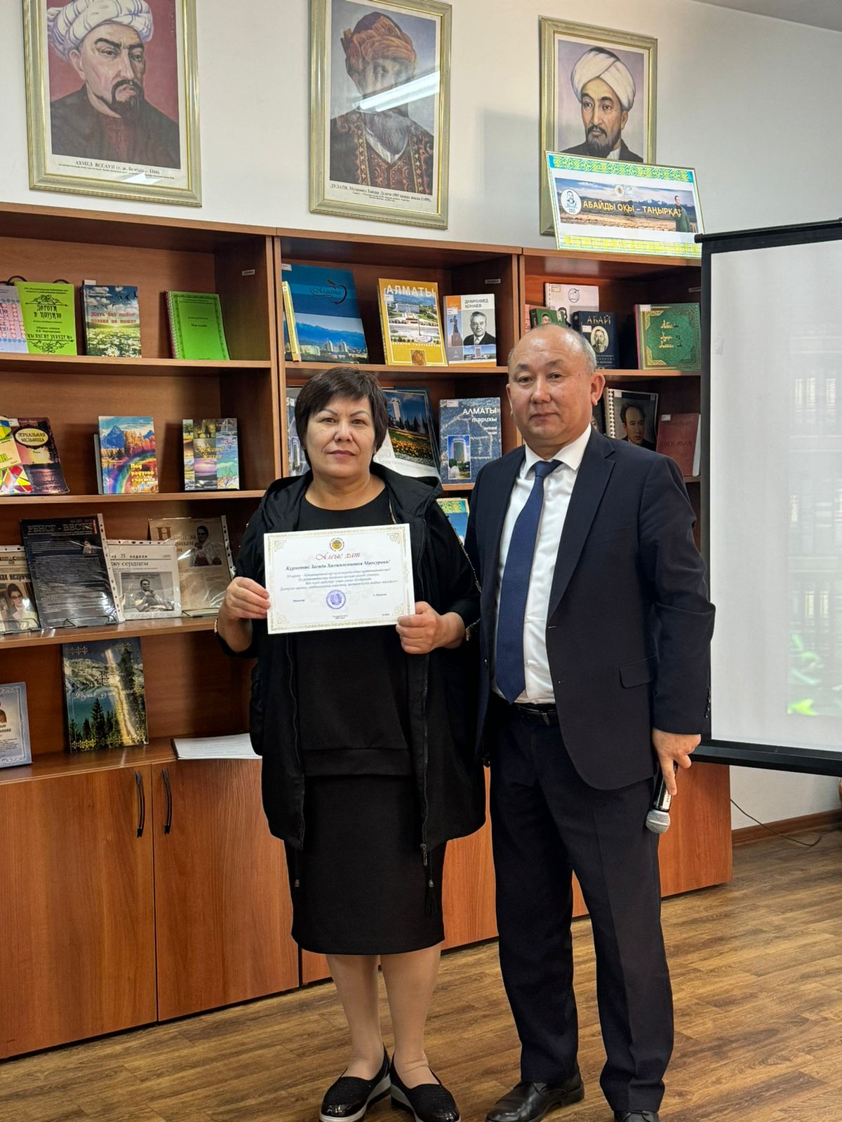 Директор библиотеки Байузаков Асхат Кусаинович поздравил присутствующих с Днем Республики, сотрудников библиотеки с профессиональным праздником с Днем библиотекаря и вручил коллегам награды Министерства культуры и информации.